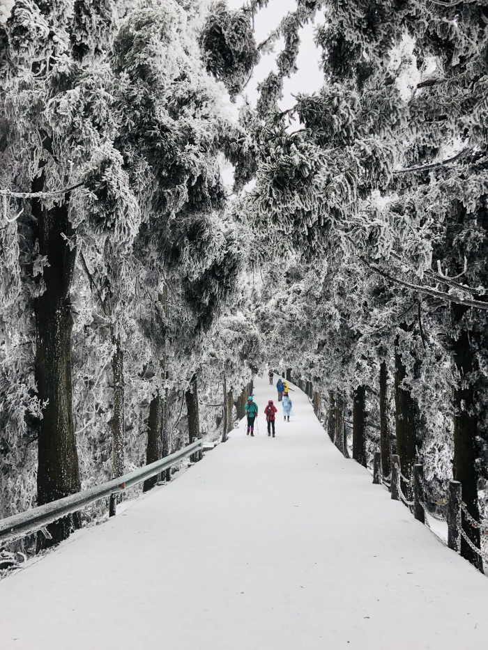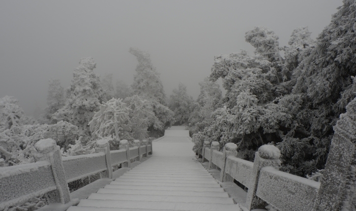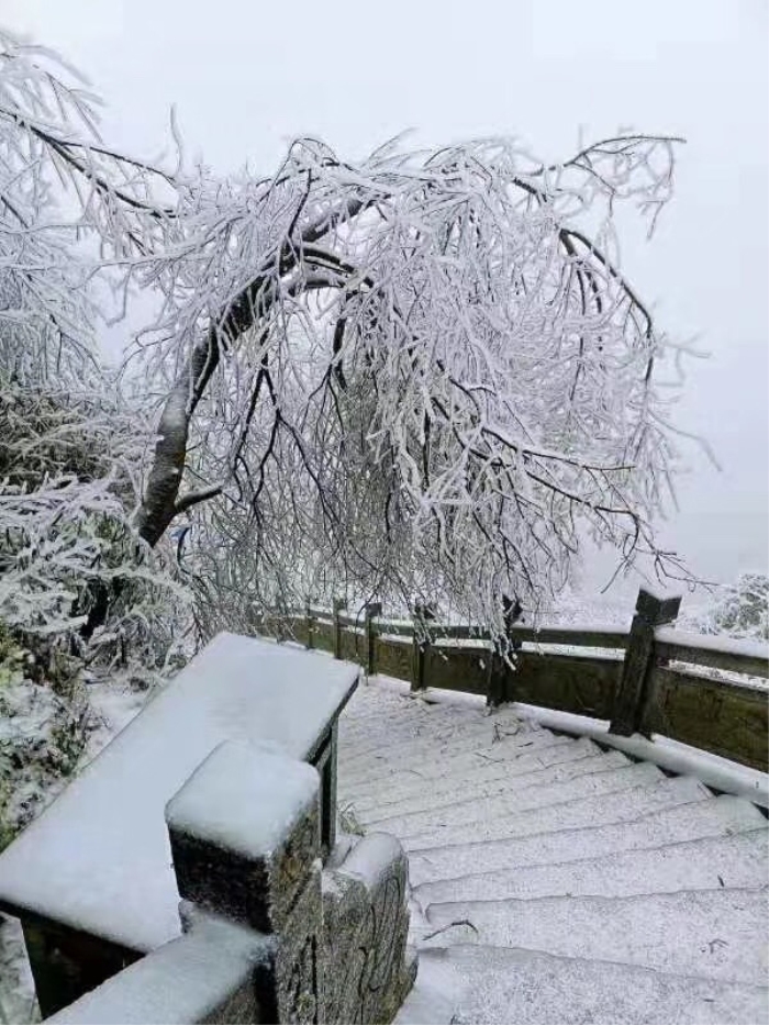 每年12月份至来年的2月份,巍巍南岳衡山群峰,一片银色世界,婀娜多姿。