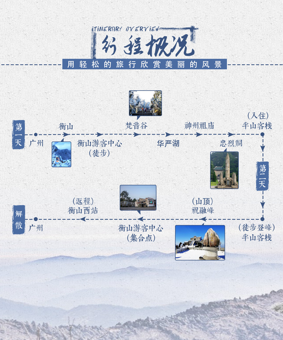 到达衡山山脚,附近自行解决午餐,午餐后领队带领大家做热身运动,然后开始我们的“朝圣之旅”。(徒步轻装即可,客栈老板会将大家的行李运送到住宿的客栈