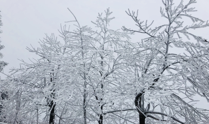 冰挂也是衡山的一大奇观,当温度低于零摄氏度之后,树枝上就会形成玻璃状的透明或无光泽的冰覆盖层简称冰挂。