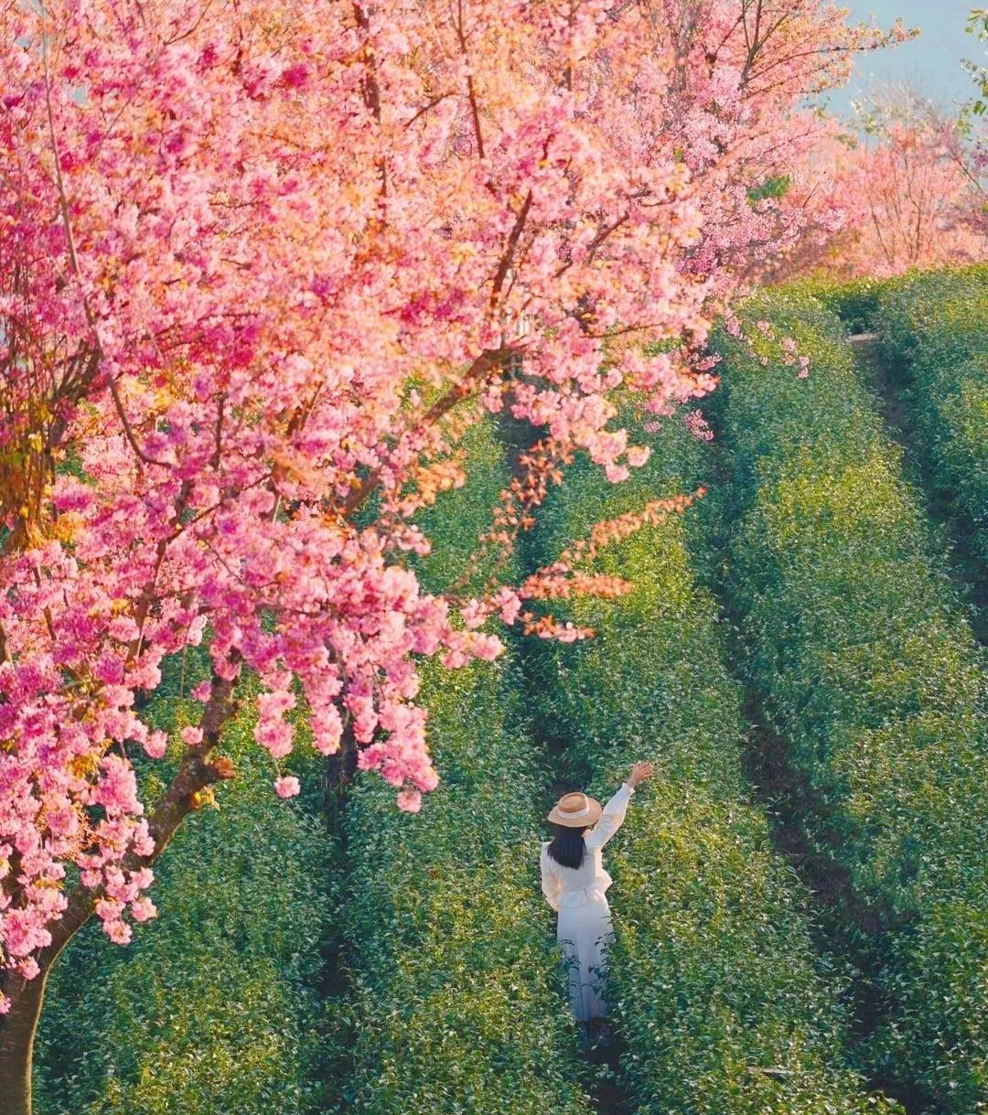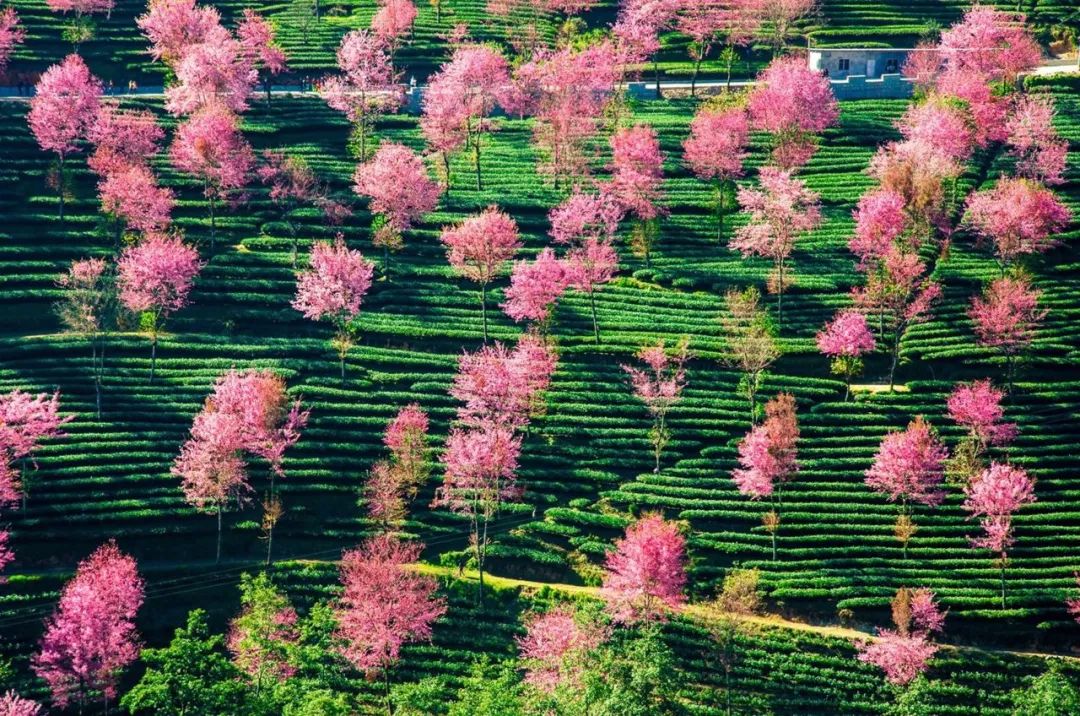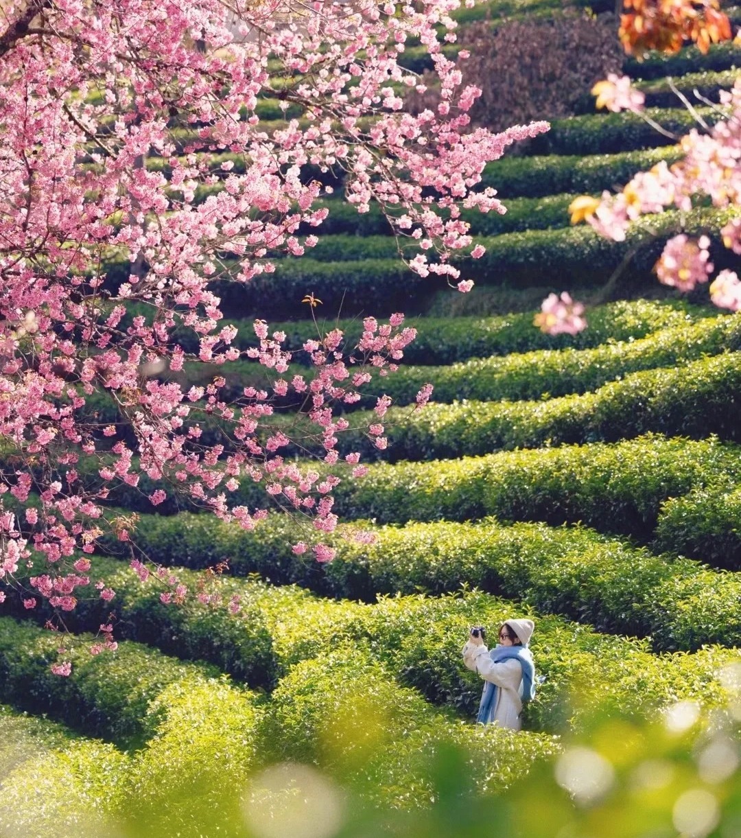 不知是樱花树装点了茶山,还是茶山更衬托了樱花的嫣然。“樱花谷”樱花绚烂,令很多摄影爱好者和游客纷沓而来。