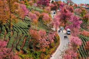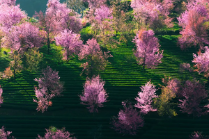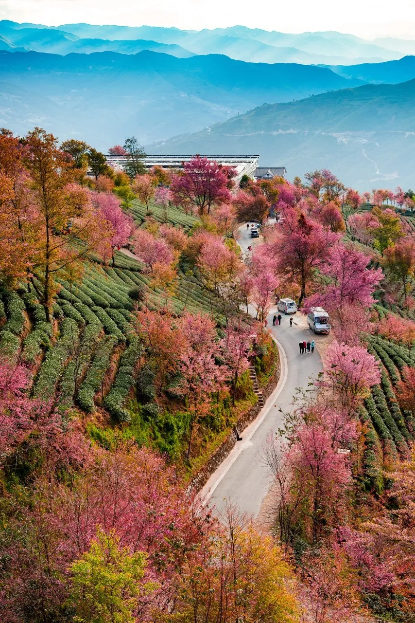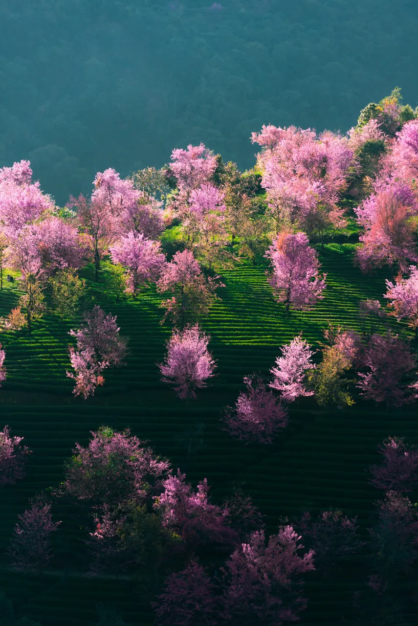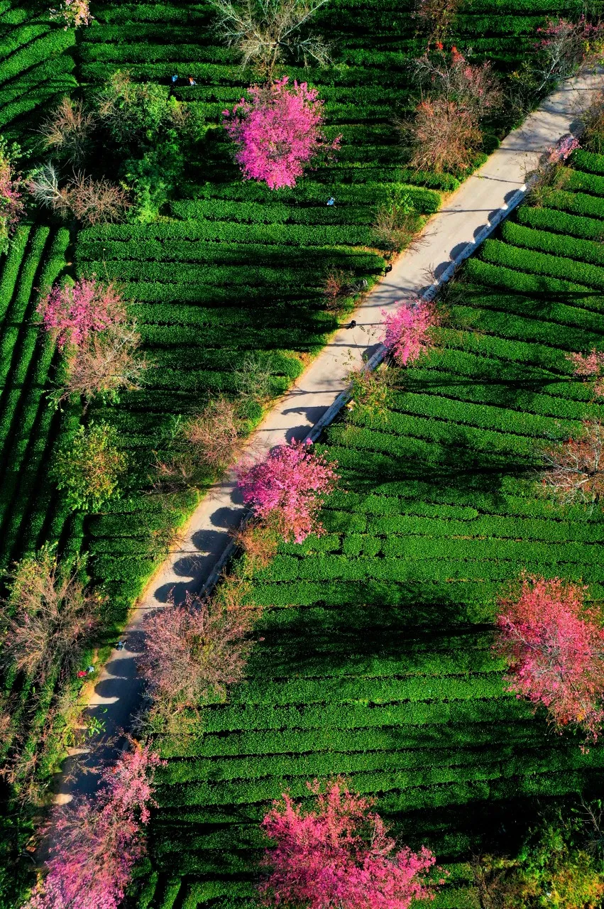 不知是樱花树装点了茶山,还是茶山更衬托了樱花的嫣然。“樱花谷”樱花绚烂,令很多摄影爱好者和游客纷沓而来。