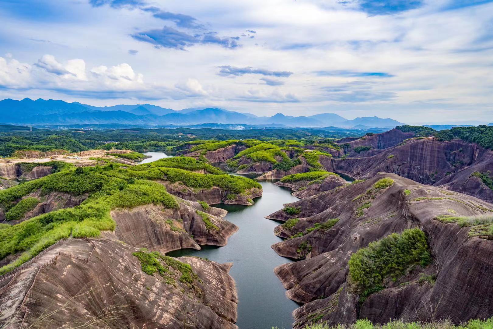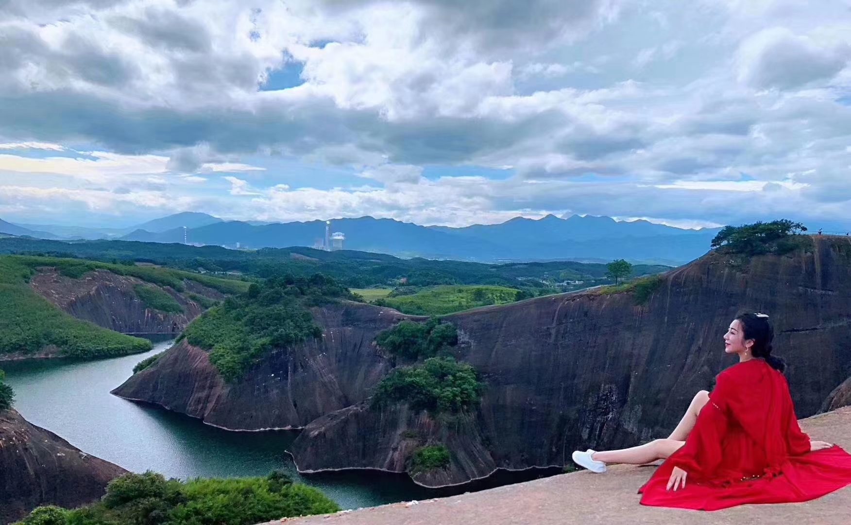 13:00到达开始徒步,一个绝对值得一去再去的好地方,经典的丹霞地貌,山水犬牙交错,奇形怪状,不是鬼斧神工,而是上天的刻意而为之!惊而不险的悬崖陡壁,绝对惊险刺激!山很青,水很秀!很原始,很安逸!整个风景区集山、水、林、洞、佛为一体,聚雄、奇、险、巧为一身。明代大旅行家徐霞客曾赞叹“江口诸峰,俱石崖盘立,无一山不奇,无寸土不丽”,并雕刻“寸土佳丽”留存至今。