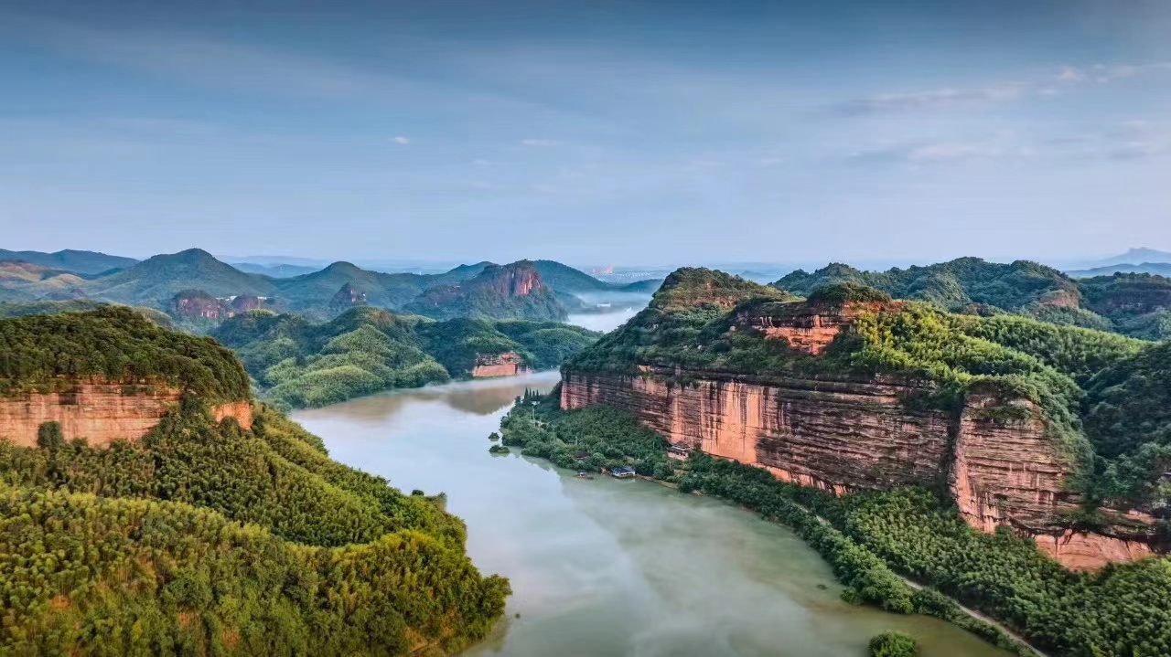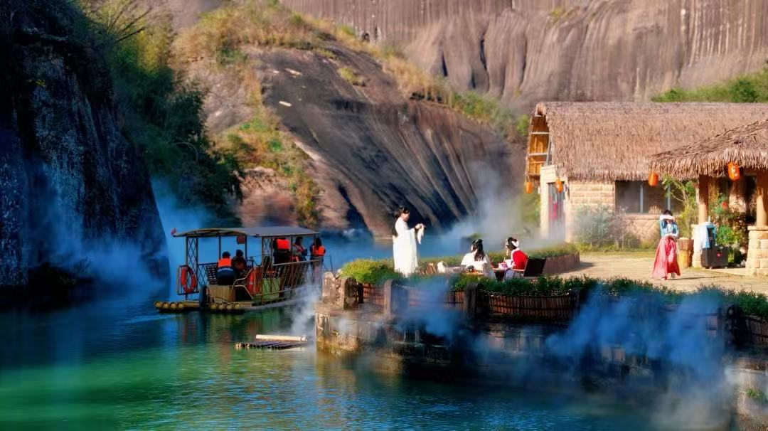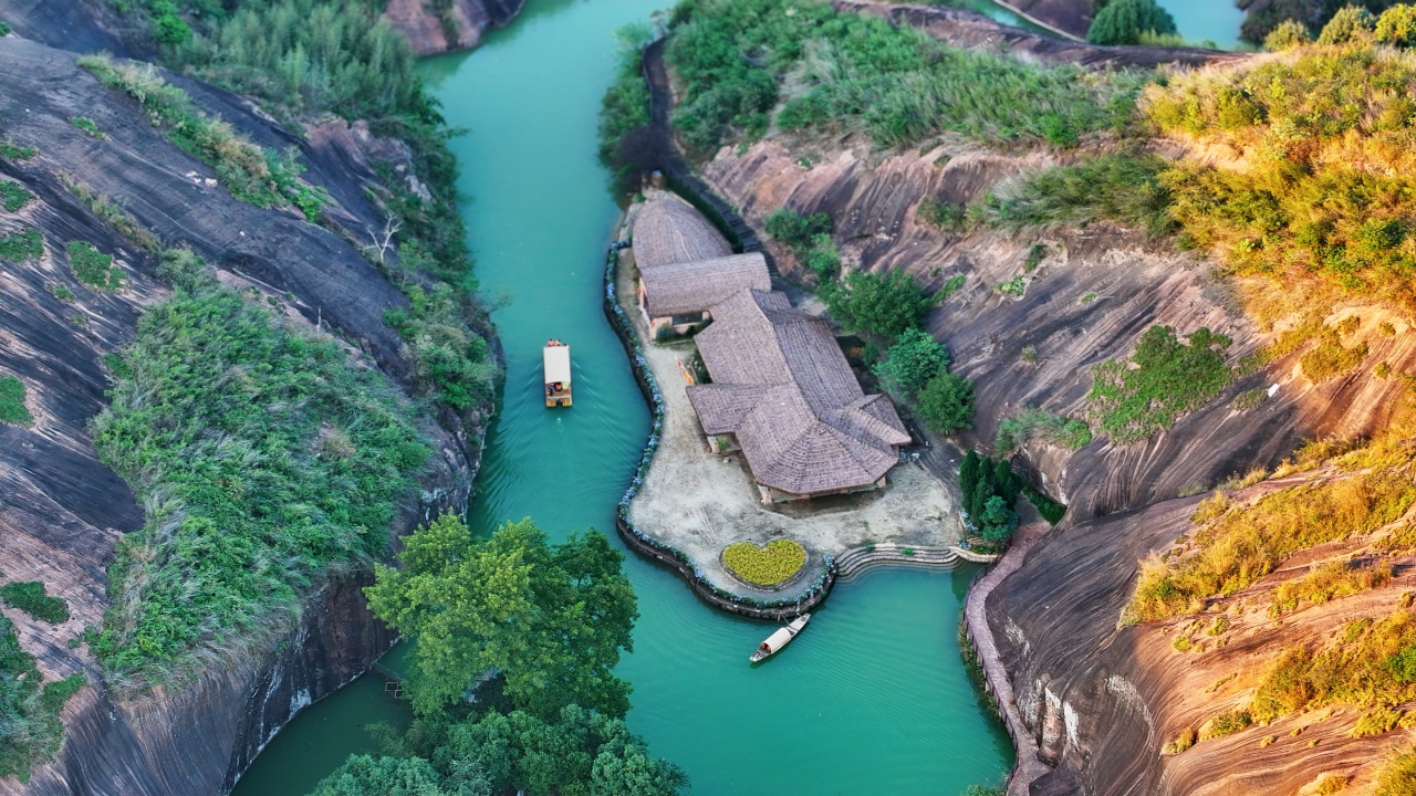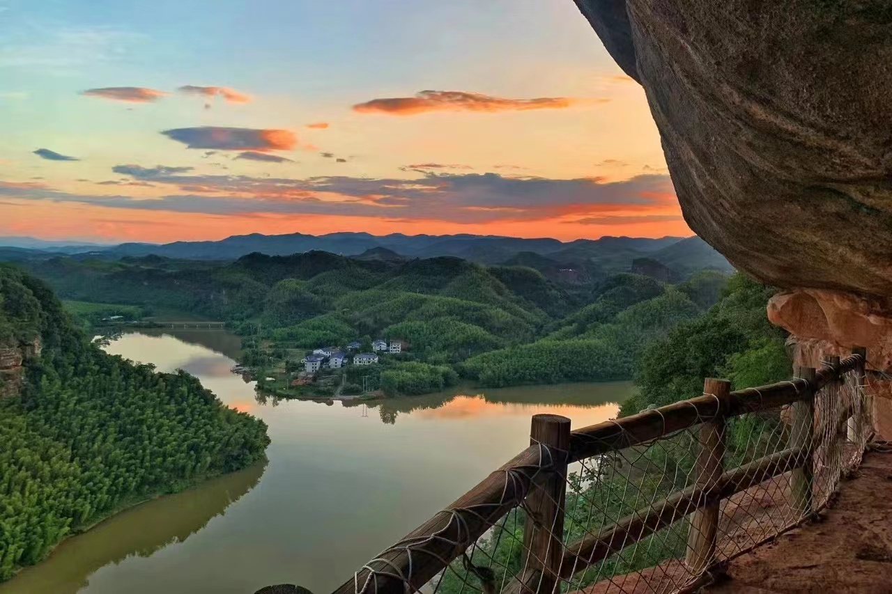 9:30到达飞天山风景区,游九龙水寨竹筏游,从大面洲码头出发,行至九龙水寨,水寨中浏览后,看鲤鱼戏水和千年悬棺,如想在九龙水寨停靠片刻,可与竹筏师傅沟通。竹筏游船的路线是围绕着光滑壮丽的岩石山,为游客展现了一幅精致的水上丹霞地貌画卷,乘坐在竹筏上,在碧波荡漾的江面上漫游,仿佛置身仙境,可以尽情享受碧水丹霞之美!