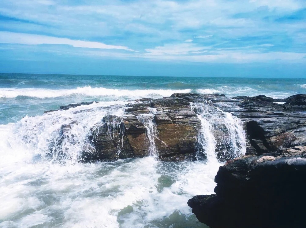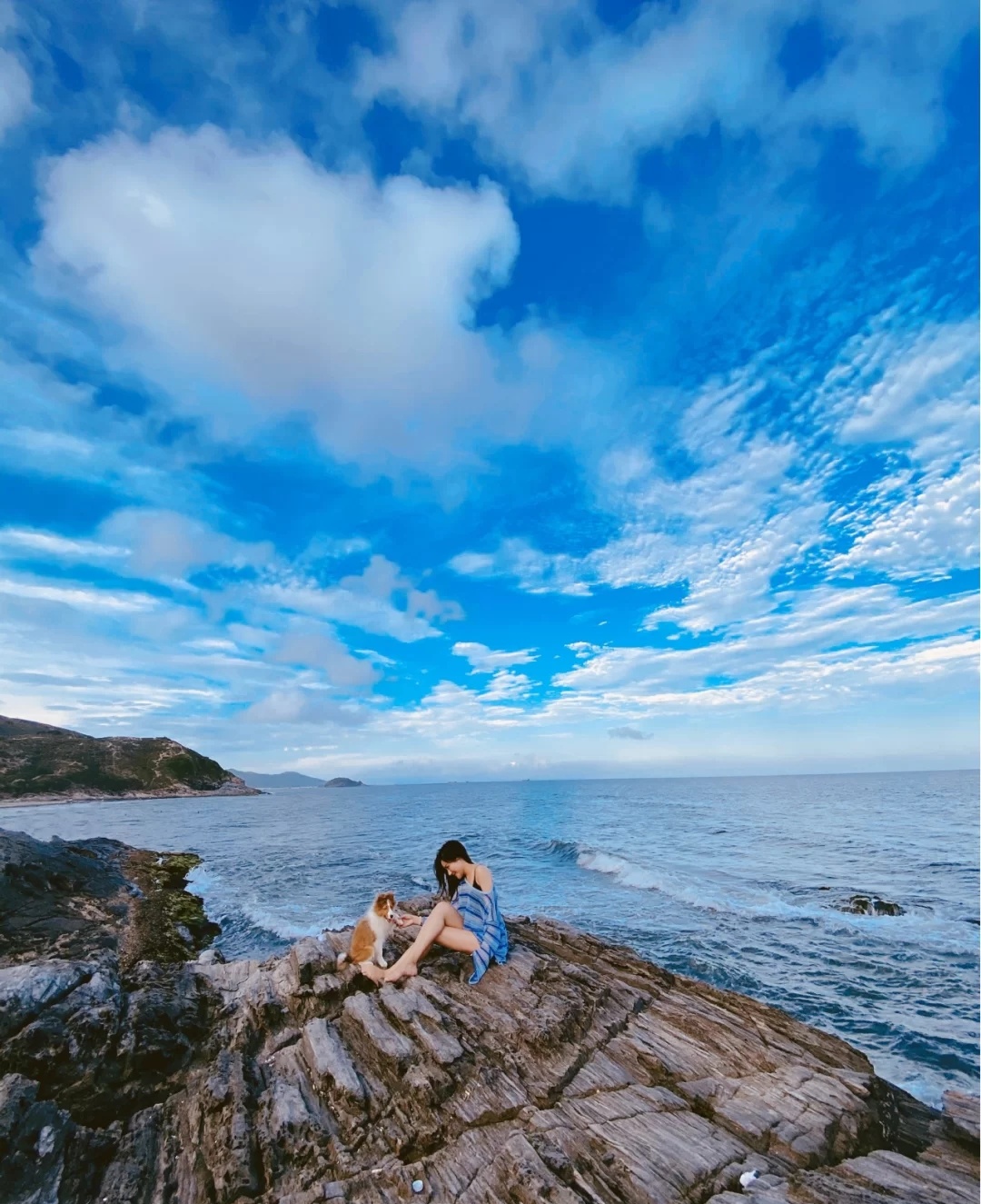 由于礁石是黑色的,海滩色调偏暗,建议穿饱和度高些的衣服拍照会很好看!
