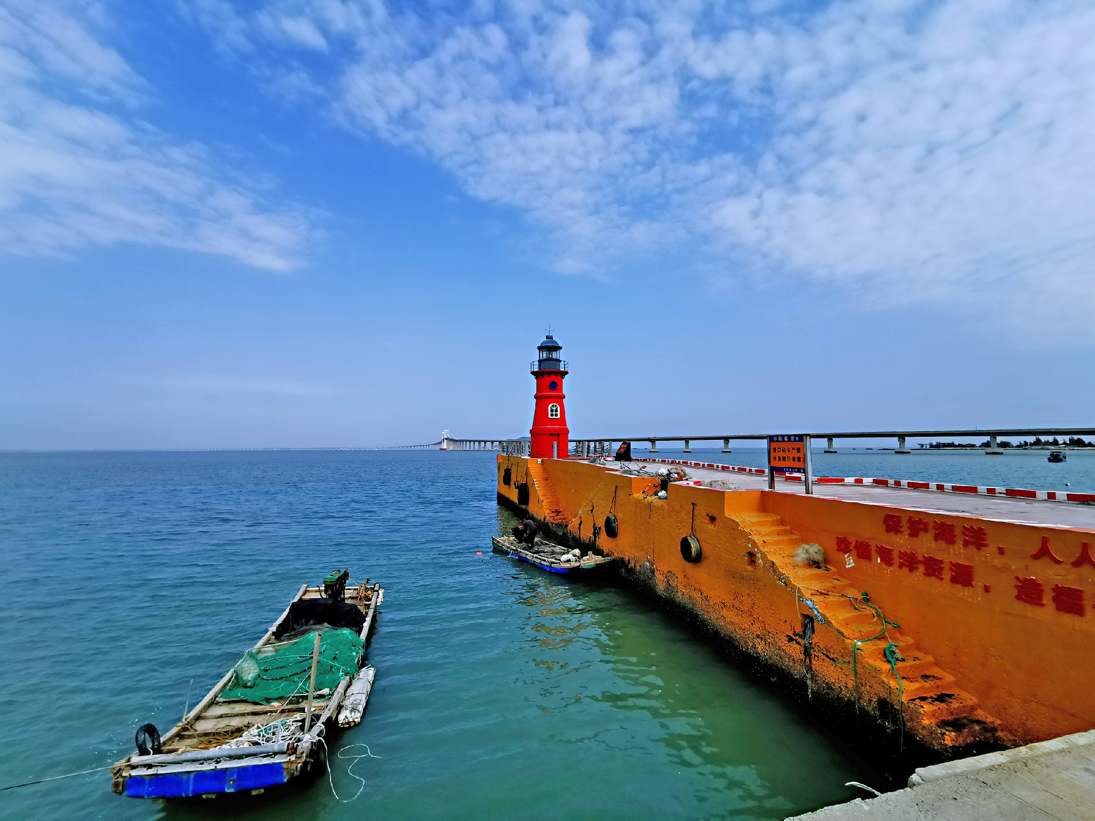 下桥后右侧便是启航广场,在这里不仅能合拍【长山尾灯塔】,还能远眺南澳大桥全景。灯塔塔身全红色,十分亮眼,风格清新,吸引了众多文艺青年到此打卡。