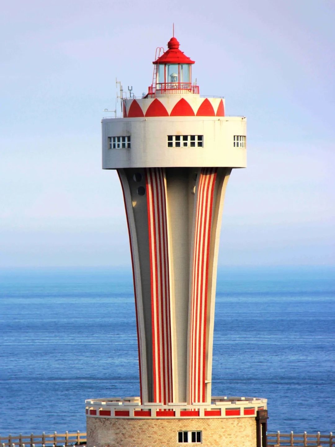 三囱崖灯塔,是岛上唯一的“粉红”灯塔,红白条纹的组合,让这座灯塔从远处看犹如粉红色,浪漫至极。