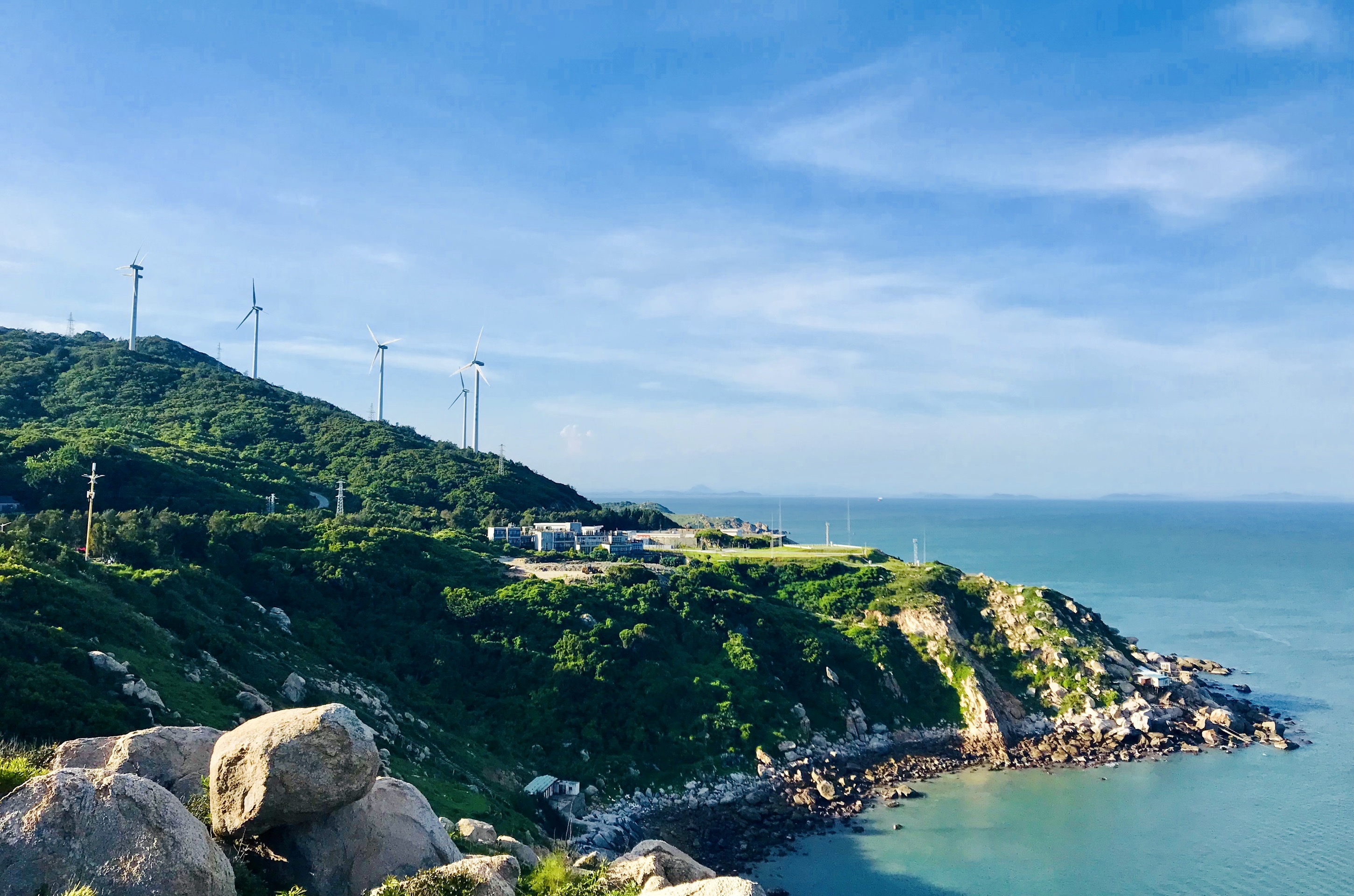无论是坐着大巴车,还是骑着小电动,驶在环岛公路上,一面是海天相接的蔚蓝,无边际的大海消散了所有烦恼;另一面是峰峦起伏的翠绿,山间纯白色的风车抚平了心头的躁动。