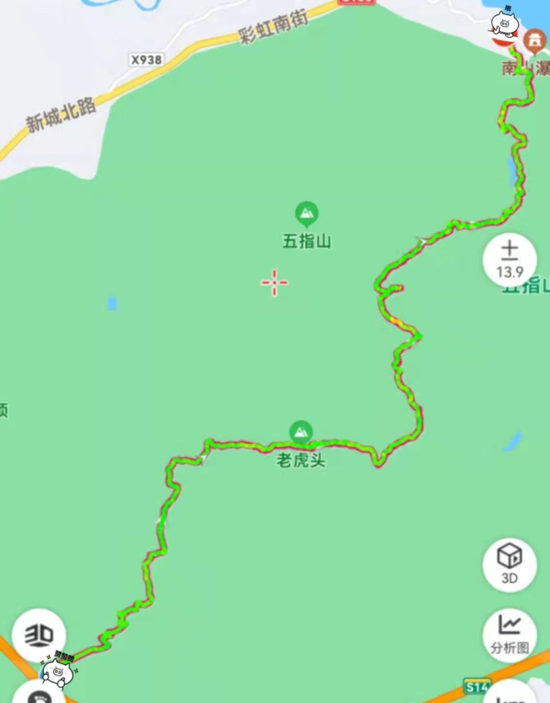 线路说明:穿越五指山老虎头,五指山只走两指,整体线路难度相较于老虎头环线略大,累计爬升多260米,时间多走半小时左右