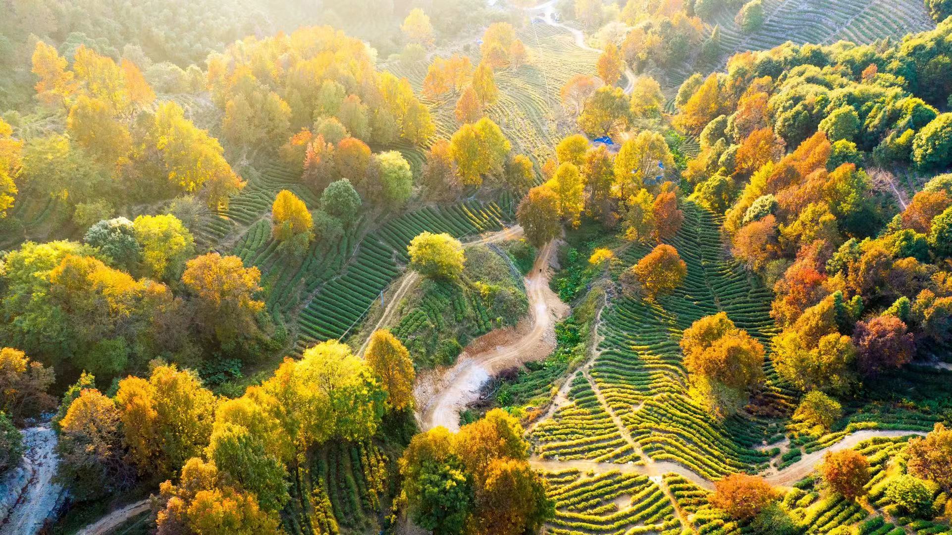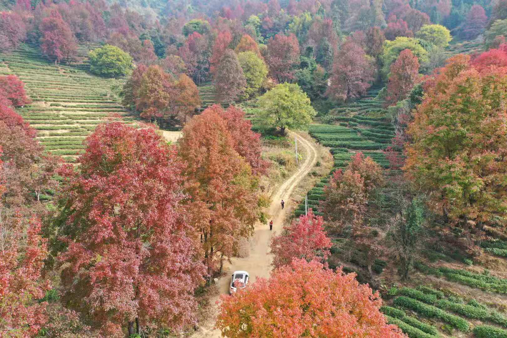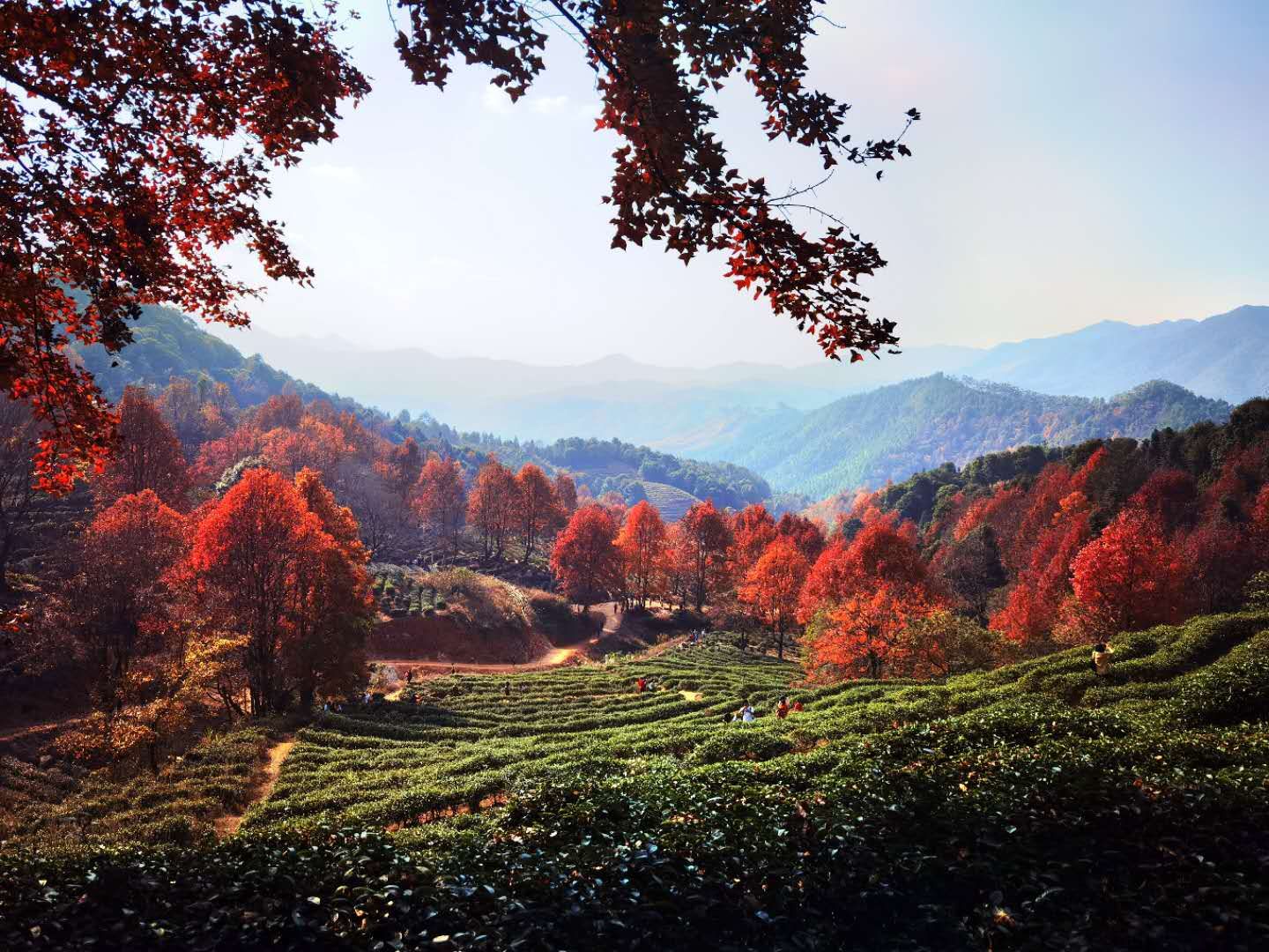12:30 到达茶场,开始拍拍美照,看看枫叶,远山,近景,感受这山间茶香四溢的清新环境;可有沿着大路绕茶园一圈,从不同的角度欣赏这里的枫叶(记得带上干粮哈,这里比较原始暂时还没有餐馆);