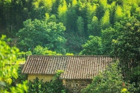 一路上林茂竹翠,藤萝缠绕,一片翠绿