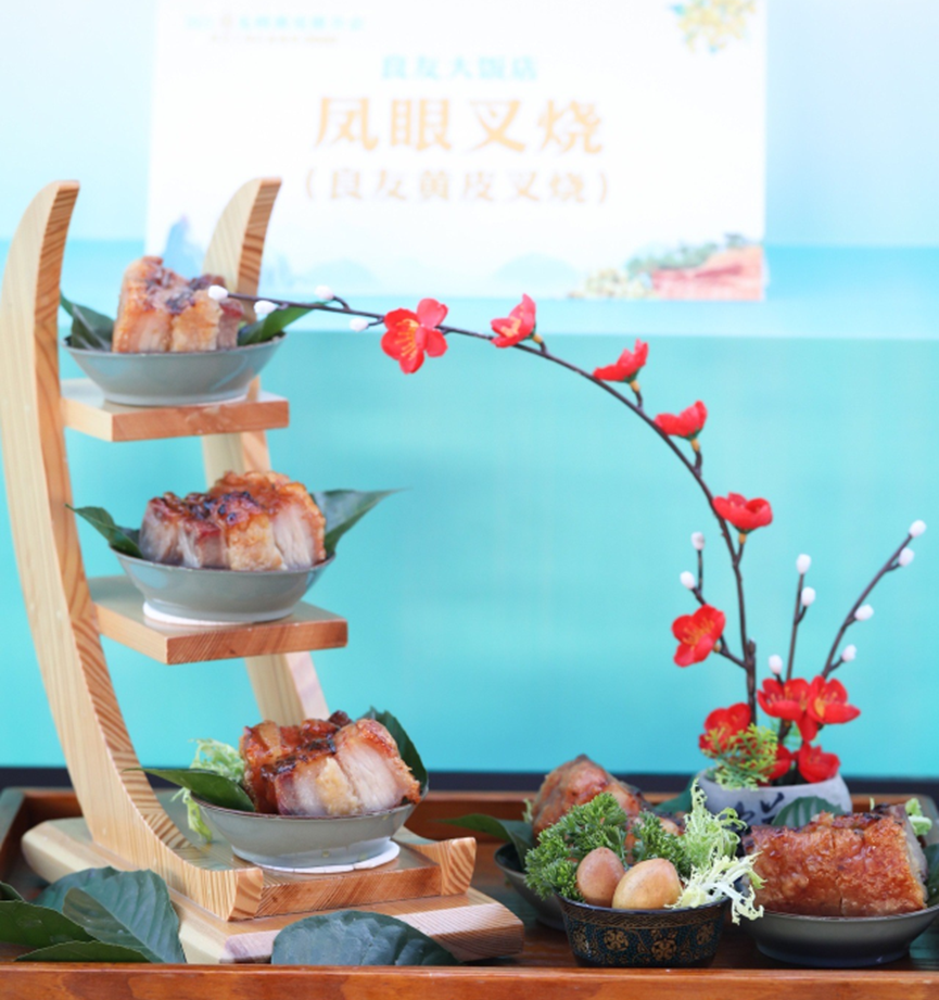 皮脆肉滑的黄皮叶生焗鸡,清香鲜美的特色禾香黄皮鸭、软糯弹牙的三宝金丝黄皮猪手,外酥里嫩的凤眼叉烧……郁南无核黄皮芳香浓郁、色香味俱佳的黄皮盛宴让食客食指大动。