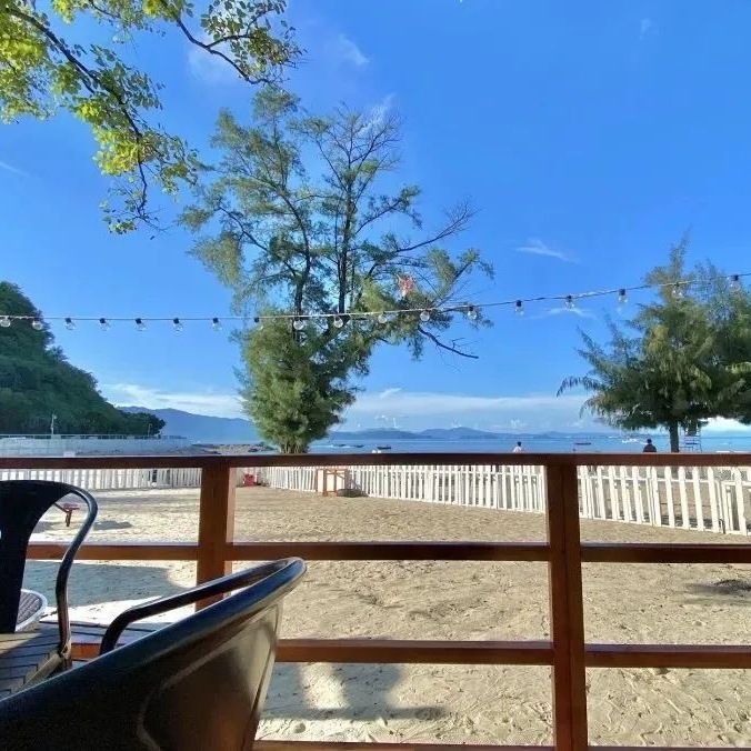 坐拥蔚蓝海水与鹿嘴湾浪漫洁白沙滩