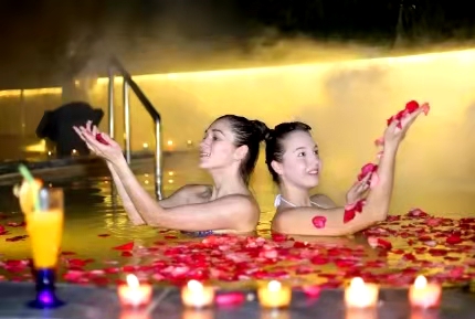 温泉区融合温泉SPA以及高科技养生护理技术和中医国药养生文化精髓,为广大游客提供个性化、专享化的温泉养生服务。
