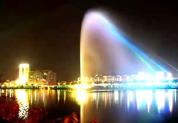 亚洲第一高喷泉位于河源新丰江江面上,