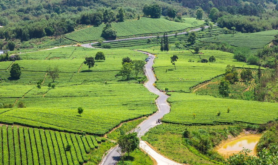 从山间大道,穿过深山幽谷,你可以感受竹林、茶山、绿田、溪水环绕之下风光无限的山水田园;