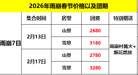 2. 单房差:不收自然单房差;出现单男单女优先安排雨崩村里与同性拼房;