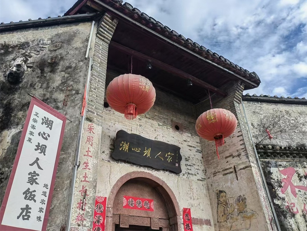 12:45 到达【湖心坝】老沈家家庭农场的前身为古代学堂,可以AA约伴午餐。吃饱之后,参观湖心坝550多年明清围楼,被称之为粤北客家第一村,集古、奇、朴、幽于一体,千姿百态