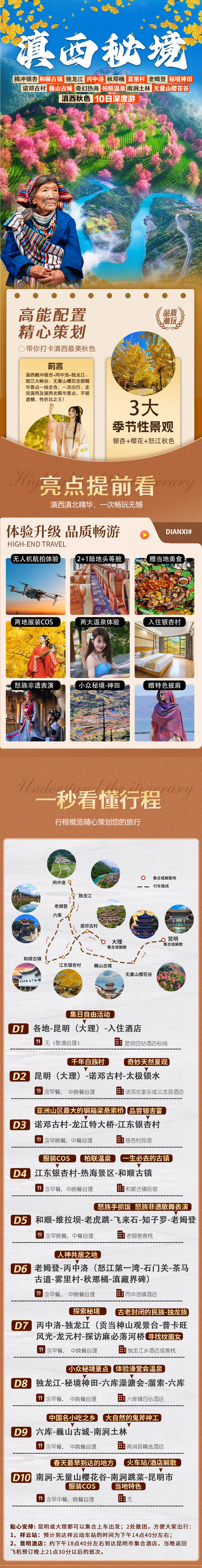 【世面独家】:独家策划,无量山樱花谷+腾冲金秋银杏王国+怒江世界自然遗产+诺邓古村落+巍山古城+南涧土林+纹面女的极致组合,全部精华景点一线全含,秋色+人文,元素丰富,一次出行走完滇西及滇西北秘境,不留遗憾,性价比之王;