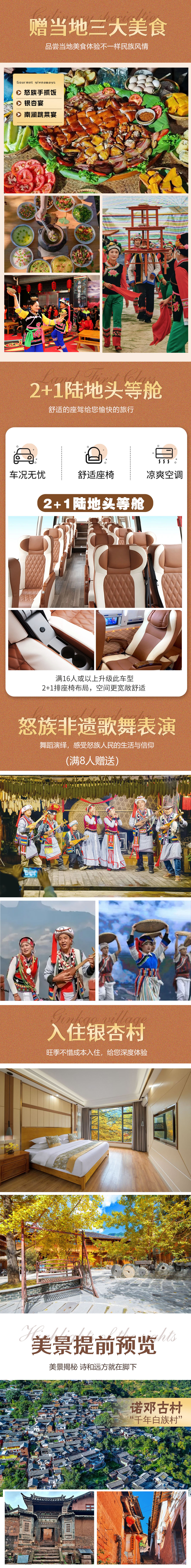 【特色美食】:1、独家赠送当地银杏宴,黄叶树木下面栖息而坐,赏美景享美食;2、老姆登赠送怒族特色手抓饭+怒族非遗歌舞(满8人赠送);3、赠送南涧特色餐南涧跳菜宴,体验当地独特的上菜方式和宴宾时的最高礼仪。