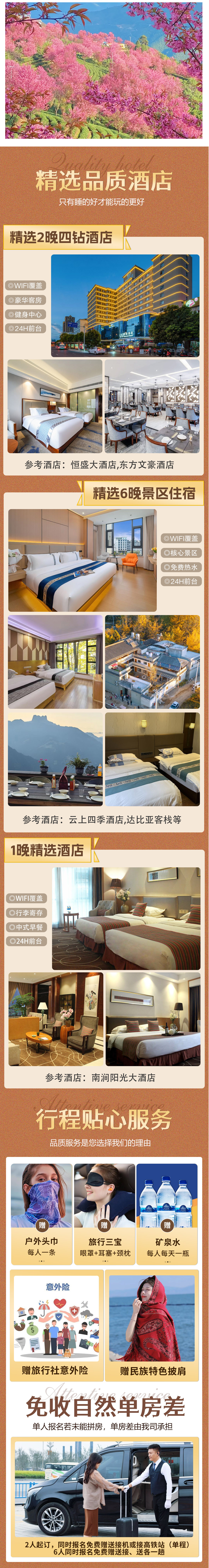 2、【昆明集合酒店】:约下午18点40分左右到达昆明市集合酒店,当晚从昆明返回的朋友需预订晚上21点30分之后的航班。建议时间充裕的可以在昆明市再住一个晚上,第二天再返程,我们可以帮忙预订昆明市解散日的酒店住宿!