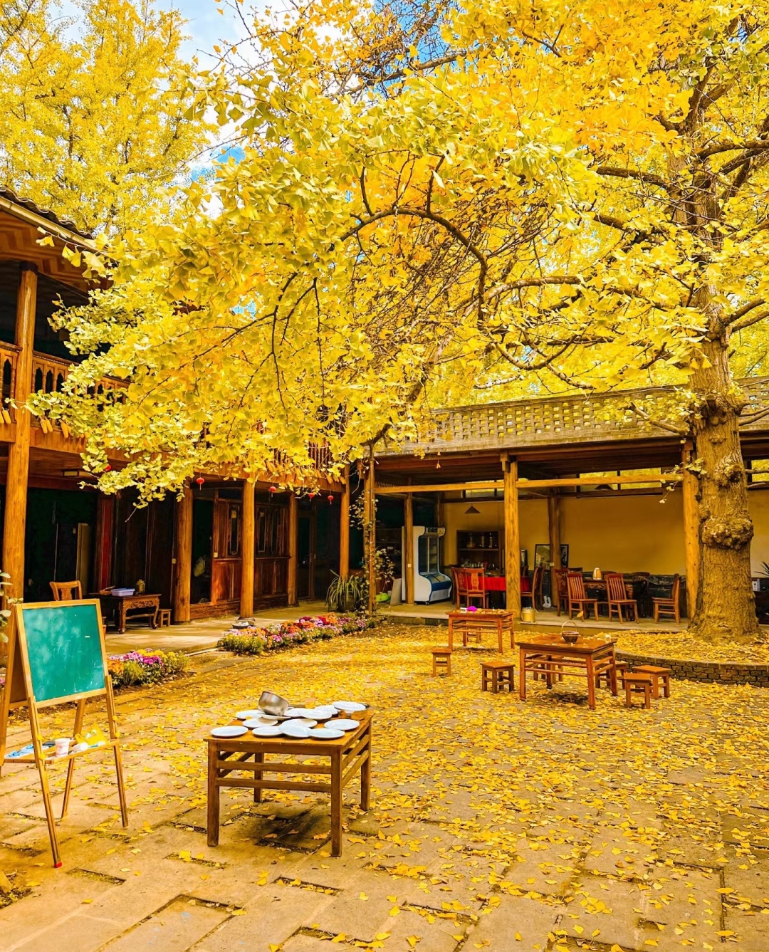 抵达入住后,开始对银杏村进行摄影创作,可穿上我们特别提供的一些古装和道具创作拍摄,陶醉于银杏村的金色童话世界中!每到深秋,房前屋后,小路上、石墙上、瓦房上、水沟中、菜地里……黄叶纷飞,一地金黄。游人身临其境,仿若走进金色的童话世界。晚上,我们特地为大家安排了当地特色的【银杏宴】,席坐在银杏院落内,尝尝当地的农家菜,赏美景享美食,一起聊天欢声笑语。