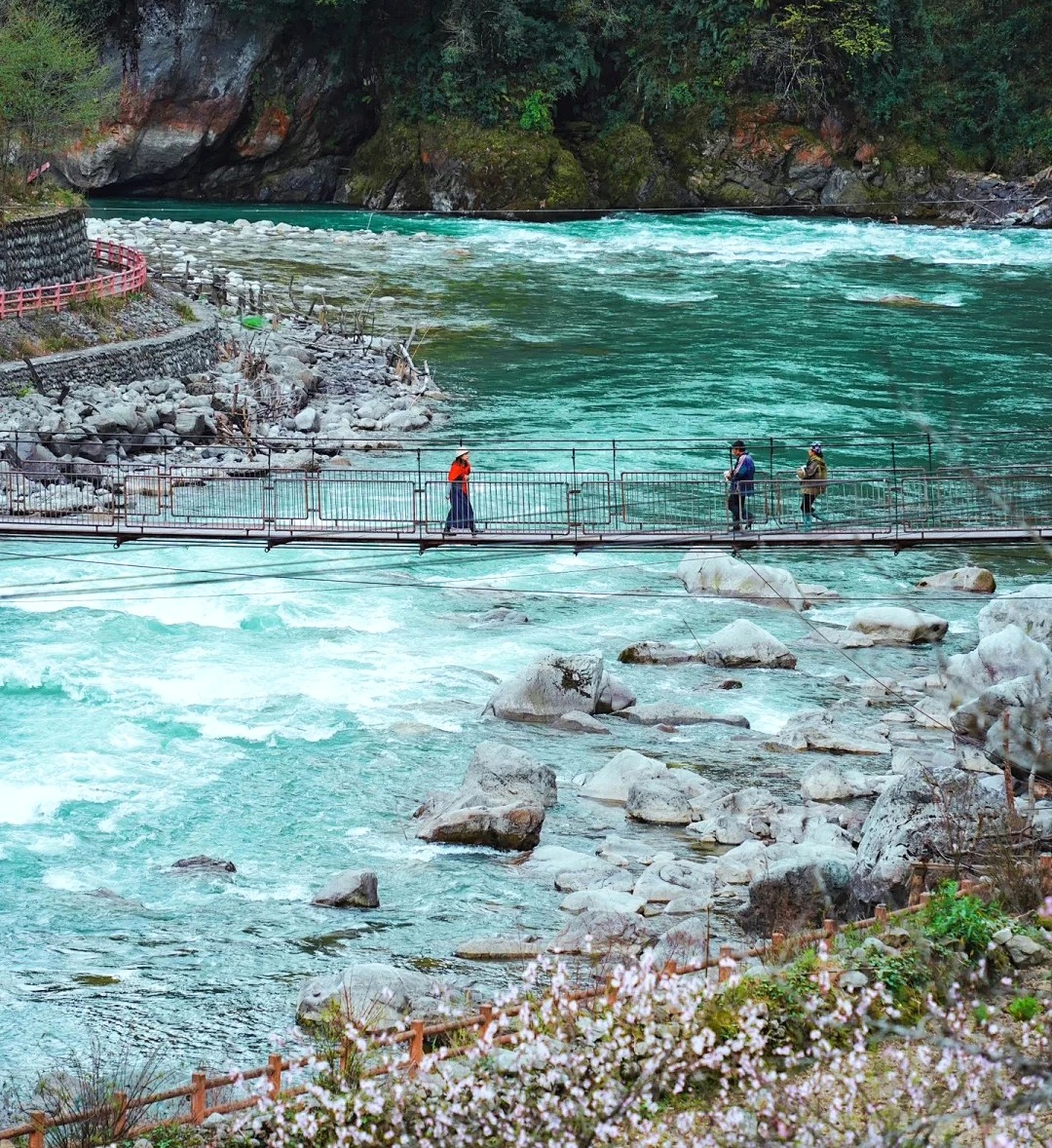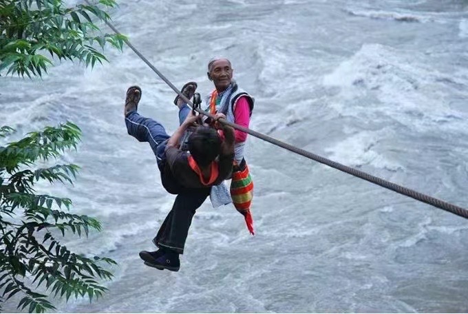在这个大峡谷中,至今仍然保留着一种原始的交通工具——【溜索】(如体验需自费50元/人),人们凭借它横渡怒江,划过奔腾的江水,在壑深万丈的峡谷间自由来去,如果条件允许,可以自行体验一番。