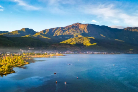 14:00 抵达【里格半岛】,突入湖心的马蹄形半岛将湖水染成孔雀蓝,猪槽船正划破水面驶向里务比岛。建议跳上最鲜艳的那艘小船:当船夫用摩梭语唱起情歌时,把手伸进湖面触碰正在盛开的海菜花——水温永远停留在18℃的温柔。
