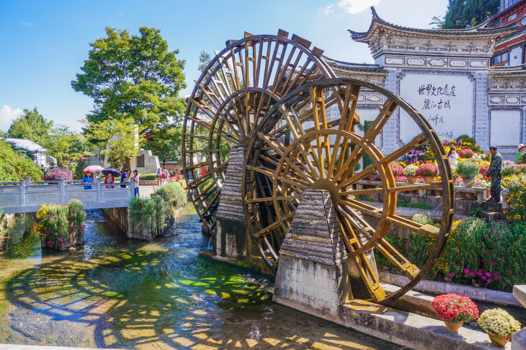 1、大水车:丽江古城必来的的标志性建筑打卡地,旁边挂了许多许愿牌,旁边有酒吧一条街,晚上热闹非凡