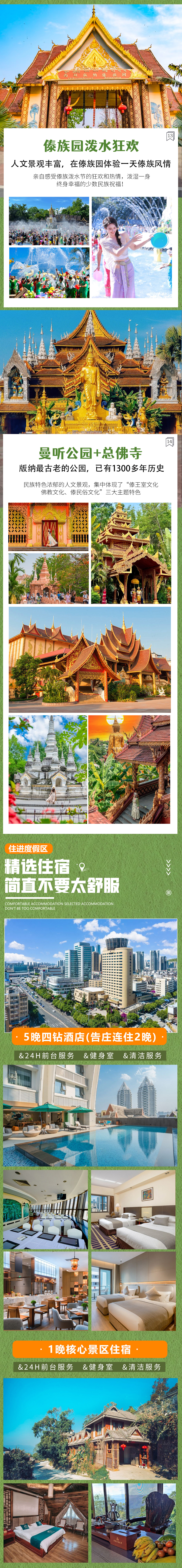 【特别体验】:1)户外体验:特别安排体验热带雨林轻徒步+尊享户外雨林大餐,零距离感受热带雨林的独特魅力;2)世界遗产:深入世界非物质文化遗产腹地-景迈山,了解和体验不同人文和风景;3)民族人文体验:体验民族普洱茶文化和傣族同胞泼水狂欢;
