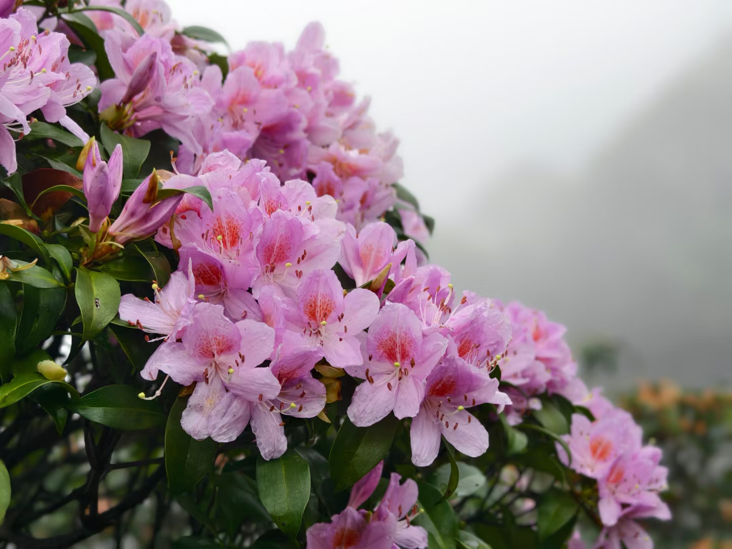 每年3月底-4月底鸡笼顶的高山杜鹃花全部盛开