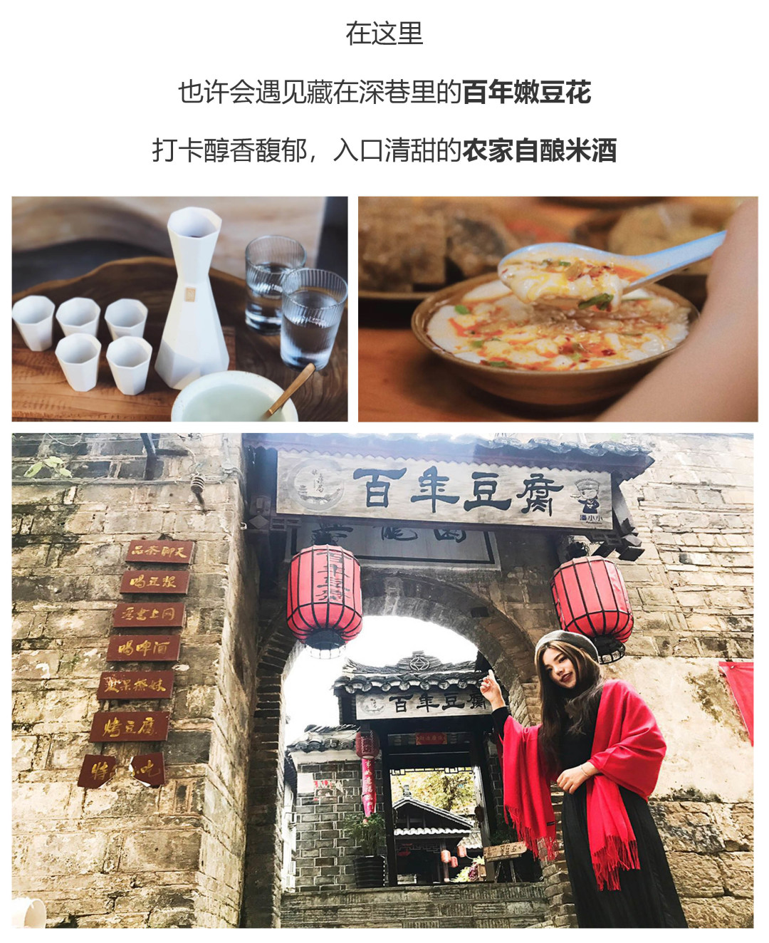 在这里我们也会带大家不走寻常路,来一次【古巷探秘】,此刻城市的喧嚣顿时清融,仿佛回到那古老的年代,重现出明清时代的生活情景。不仅如此,还会独家定制在深巷中【吃百年历史的豆花,喝陈年老酒馆的美酒】,深入构成镇远几百年间命脉的历史。登上【石屏山】,一起俯瞰这古镇美景吧。