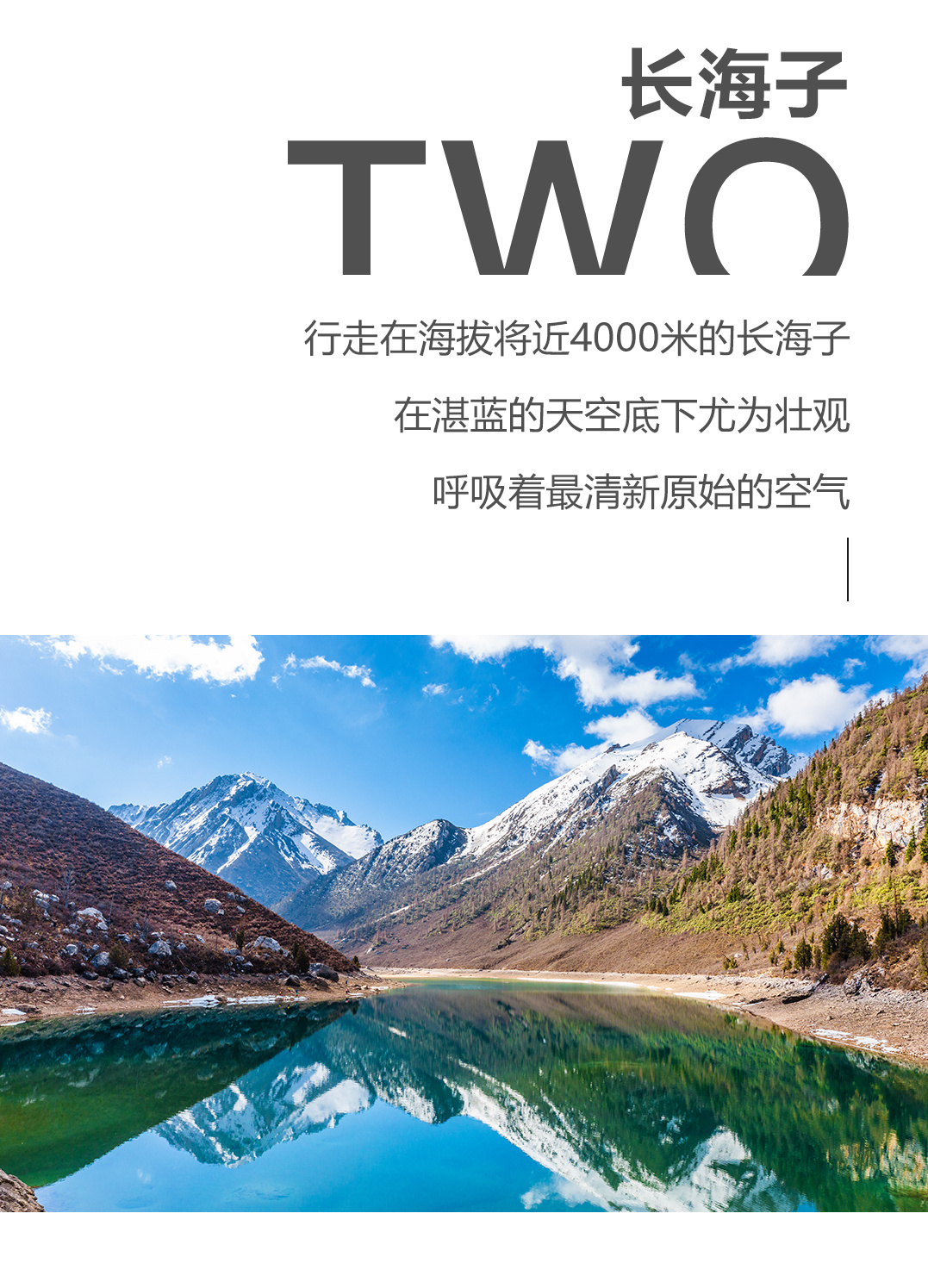 行程概览:早饭以后,我们前往长海垭口,长海垭口海拔约4200M,来到长海子,长海子位于卡卡沟口尾部,是一条狭长型的高原湖泊,碧绿的湖水,十分宁静;再往后就是原始杂木树林,夏天郁郁葱葱、秋天是红叶满山,而后又是高原草甸牧场,进入沟内开始顺流而下,最后乘车前往川主寺镇入住酒店。