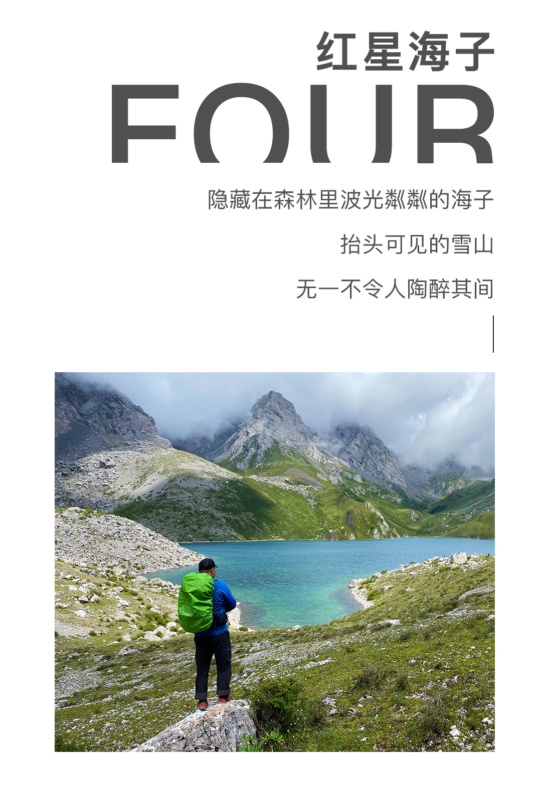 红星海下营地-(徒步约2KM)-红星海-(徒步约4KM)-草海子-(徒步约4KM)-鱼海子-(徒步约4km)琅琊沟营地