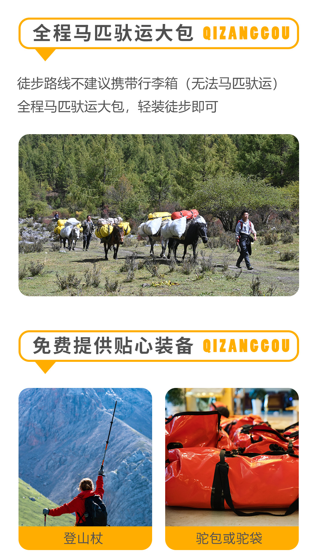 专属驮马(仅限行李驮运) | 平季600元/国庆800元 (限重30KG) |
