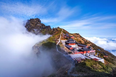 早餐后乘车出发梵净山,从东门换乘观光车进入景区,后坐缆车上山游玩蘑菇石,老金顶,承恩寺普渡广场,登天空之城红云金顶。