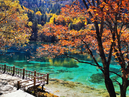 九寨若有十分美,九分定被秋水拿了去。也只有这个时候,举世罕有的红叶才肯露面加持,任谁看了都想说一句九寨秋水世无双。
