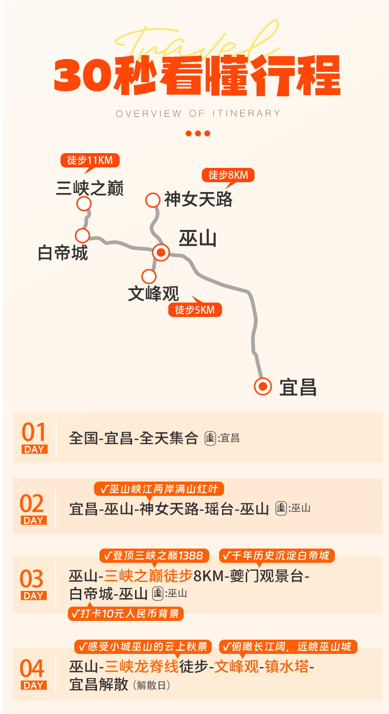 白帝城门票+船票、文峰观门票+景交、三峡之巅景区景交车、神女天路操作费、青石班船小交通