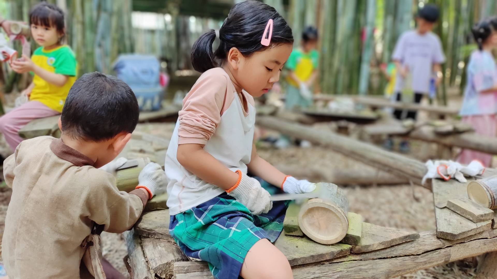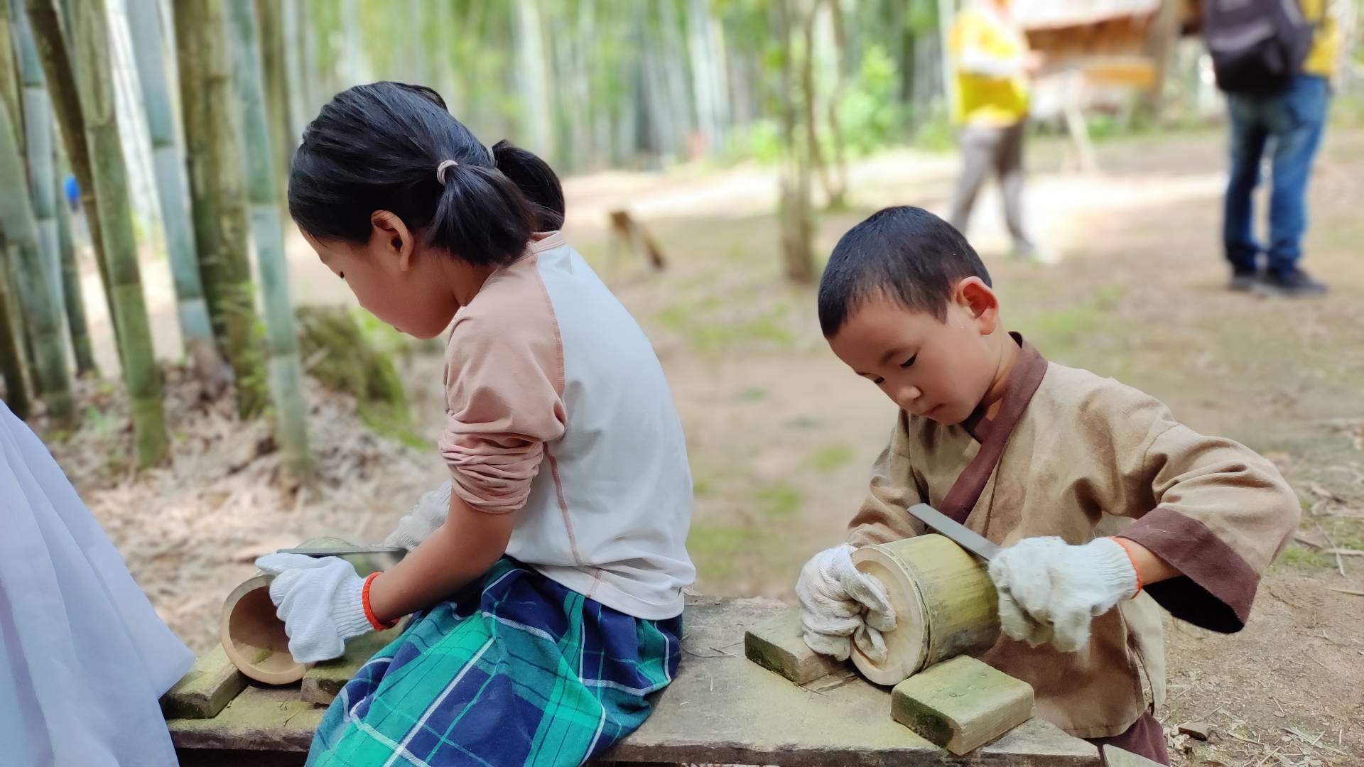 10:40-11:20 手工制作篇:中国传统工艺品的一种,它不仅在实用性上有着广泛的运用,在文化上也有着深刻的象征意义。把漂亮的竹子做成:手环、笔筒,竹剑、筷子,弓箭,水瓢,我们需要团队合作,需要耐心完成打磨,制作好的作品,可以带回家使用,节约而环保。