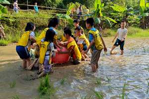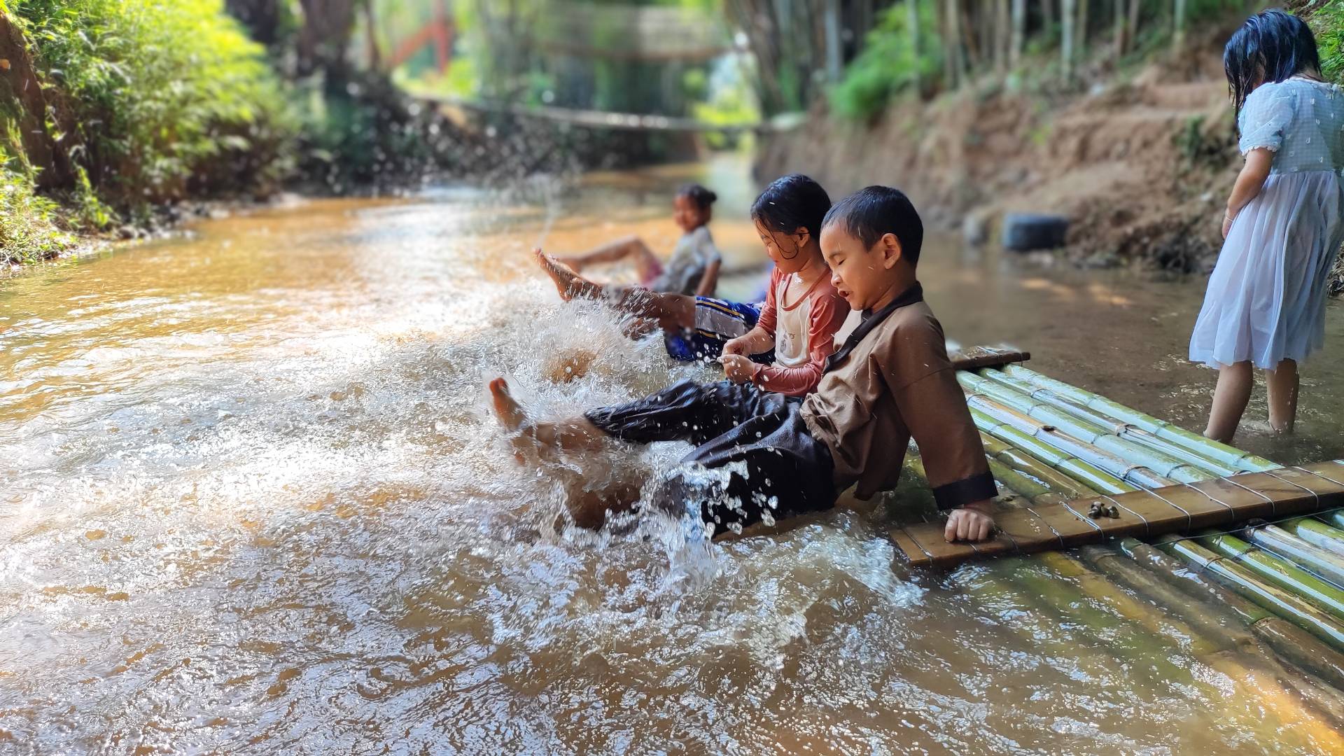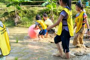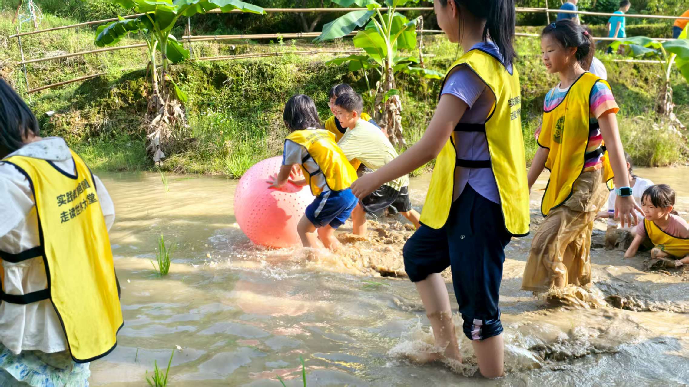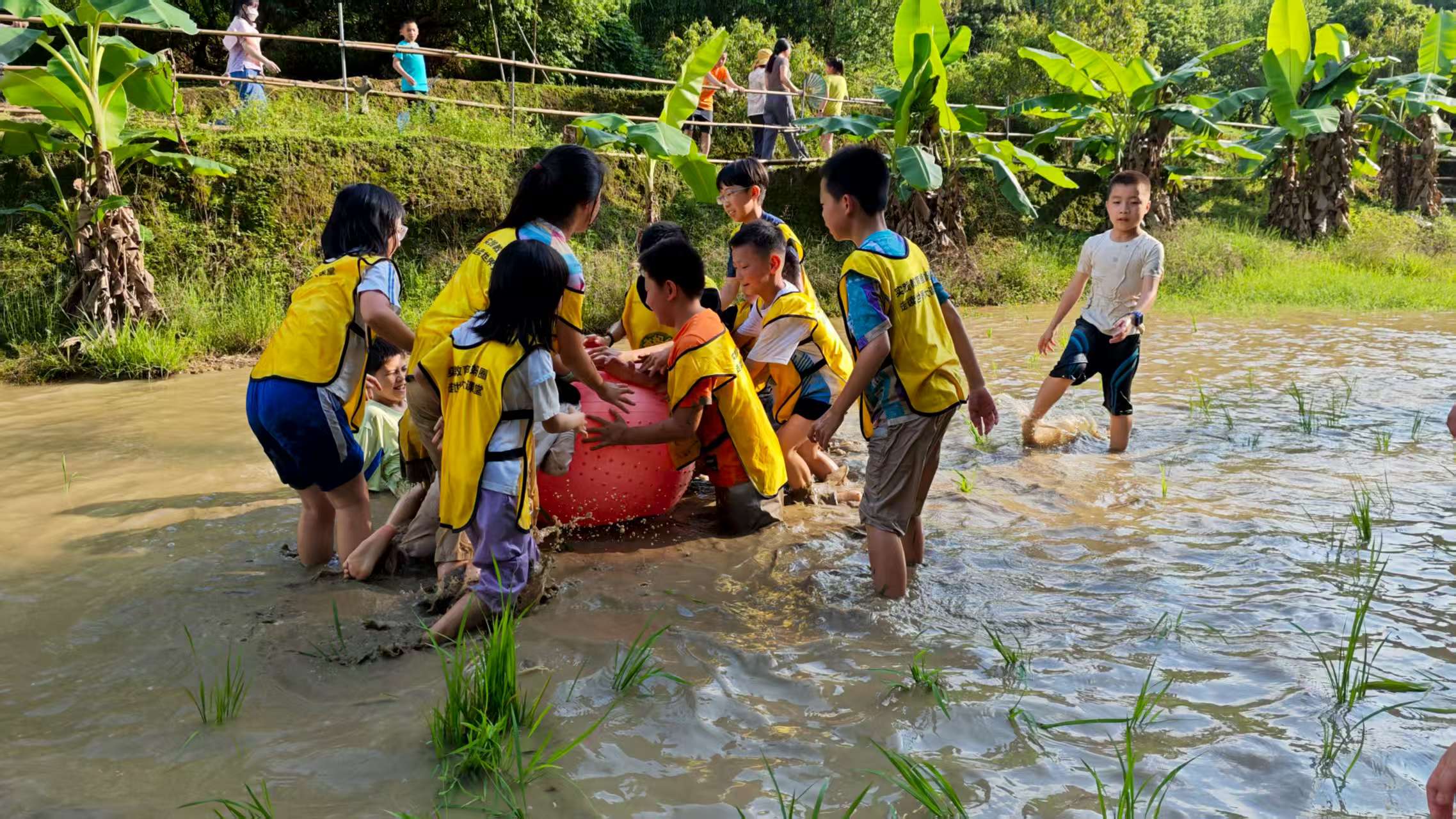 14:30-15:30生态小河篇(小船长养成记):欢声笑语中学玩竹筏,掌握水上平衡技巧‘,在配合中漂起竹筏。