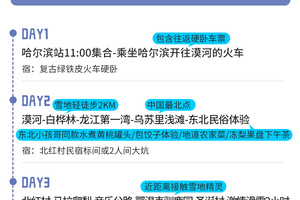 春节团期:漠河段2晚住宿补300元/人,补1晚哈尔滨住宿350元/人,1晚农家炕如想单住请现询客服;