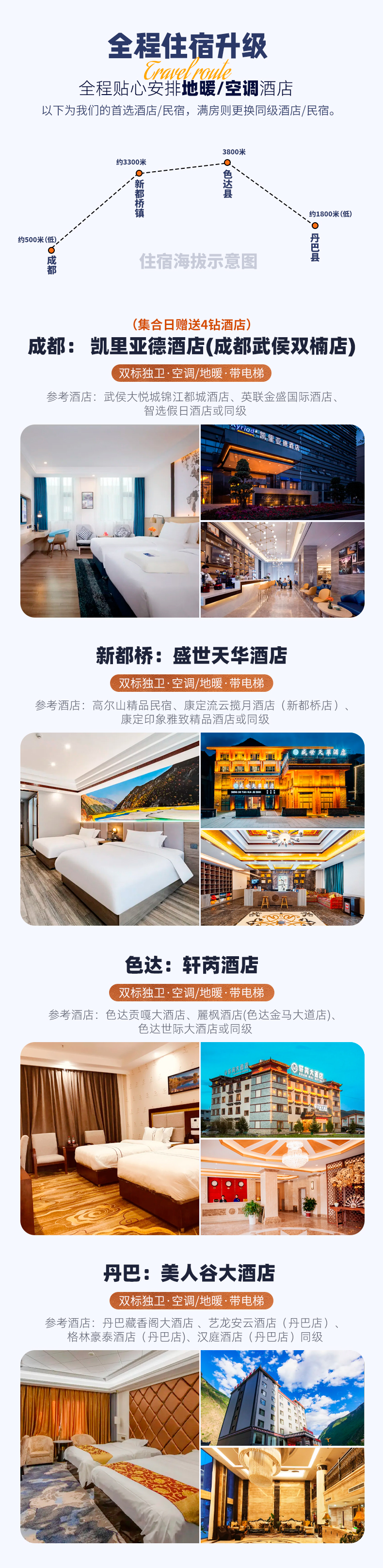 (3)如遇个别酒店,没有电梯和提行李服务,敬请自理;