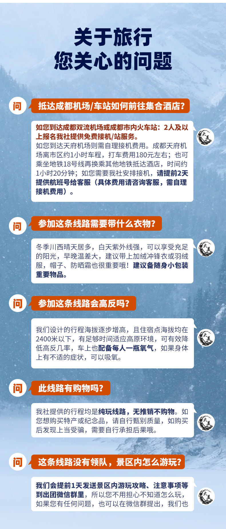 7、2人及以上报名赠双流机场接机/成都市内火车站接站(天府机场接机需自理费用)。